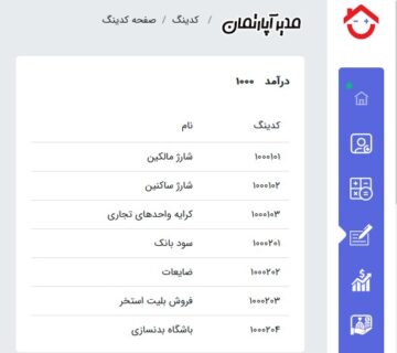 لیست هزینه های دیفالت ساکنین در نرم افزار حسابداری مدیرآپاتمان